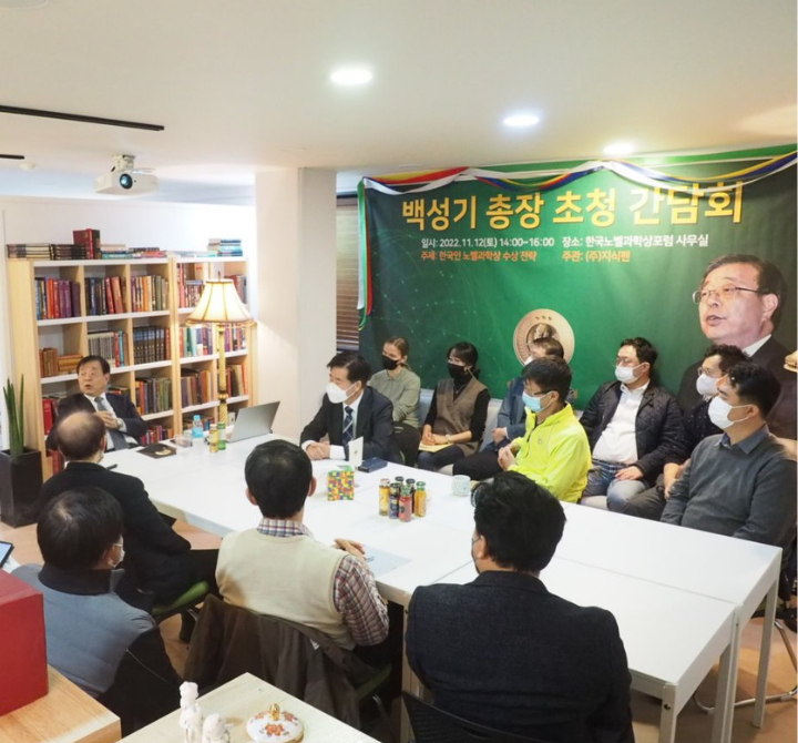 한국노벨과학포럼 창립일 3일을 앞두고 포스텍 제5대 백성기 총장님을 모시고 간담회(11.12.)를 실시하였습니다.